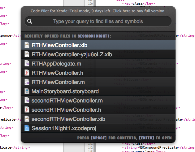 08 Jan 2013Code Pilot is a free tool that lets developers navigate quickly between files in Xcode. I was introduced to the tool yesterday by Don Bora, instructor of the Mobile Makers iOS Accelerated course that I’m currently taking.
